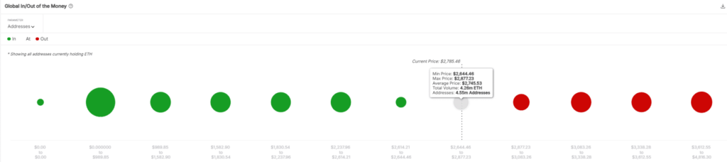 Sinds de verkiezingsdag is ETH slechts met 15% gestegen, maar het ligt nog steeds 30% onder de piek van $4.016 tijdens de Trump-rally. Afgelopen week brak ETH door zijn ondersteuningszone en daalde onder de $2.800, wat drie keer zo veel was als de daling van Bitcoin. Ondanks dat de Relative Strength Index (RSI) aangeeft dat ETH oversold is en de On-Balance Volume (OBV) tekenen van herstel vertoonde, veegde de steile daling 14% van de winst weg, waardoor 6,18 miljoen adressen in de verliezen kwamen.